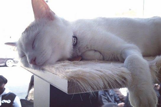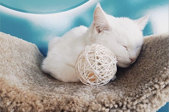 The Cafe is here just for this weekend (it's illegal to go any longer than that according to NYC law), but it's enough time to have already secured adoptive homes for seven cats. If you're lucky enough to get inside, customers can speak to a cat expert and even sit down and enjoy a cat'achino, which comes with a cat-shaped foam topping. (But, if you relax for too long, you'd feel the psychic pressure of everyone in line giving you side-eye.)