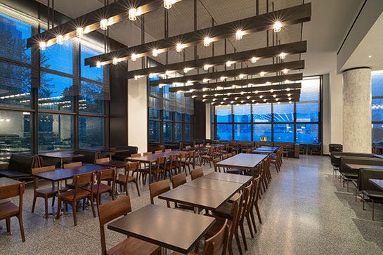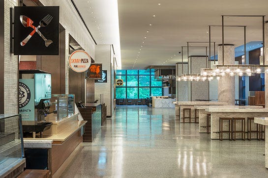 The new eatery opened on June 3 and features some of the best restaurants in the city. Located at 250 Vesey Street in Battery Park City, the new space includes Blue Ribbon Sushi, Mighty Quinn's Barbeque, Chop't, Num Pang, Black Seed Bagels, Dig Inn, Dos Toros, Sprinkles, Olive's, Little Muenster, Skinny Pizza, Umami Burger, and Tartinery. Huge enough to seat 600 guests, the new venue also has killer river views. Click through to get a sneak peek at lower Manhattan's newest resident. It's enough to make you ditch that brown-bag lunch you brought today.