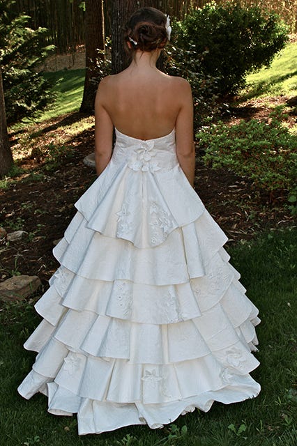 Probably not as far as these intrepid brides, who made wedding gowns out of something most of us (hopefully) have laying around the house. As participants in Cheap Chic Wedding’s 10th Annual Toilet Paper Wedding Dress Contest, brides-to-be were allowed unlimited rolls of TP, tape, glue, and a needle and thread. That's all. But, that didn’t stop these crafty ladies from draping, ruching, and mermaid-skirting their ways to nuptial-fashion success. These dresses may not be Vera Wang, but they sure are dresses — which is more that we can say for our TPing skills. From a skirt that has tiers of perfectly placed ruffles, to a baby-blue number with an Elizabethan collar, the winning looks are, well, something else.