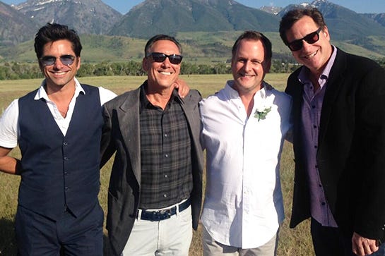 But how do we know that it didn't rain? Because there was an amazing Full House reunion at the nuptials, which the cast gleefully documented on Instagram and Twitter. Uncle Jesse, Danny and D.J. Tanner, Kimmy Gibbler, and Full House creator Jeff Franklin all flew out to Montana so that everywhere Dave Coulier looked on his big day, there was a heart...and a hand to hold onto. (Us Weekly)