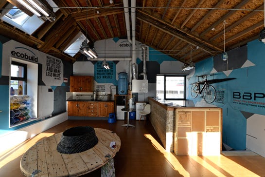 And, it's not just the frame that's eco-friendly. The entire house was constructed from either recycled, scrap, or unused materials from other construction sites. The team used 500 bike tires to seal windows and soundproof the first floor and 2,000 used carpet tiles to cover the floor and walls. Click through for photos of the interior and a look into the walls themselves. Get familiar, this may just be a prototype for sustainable living in the future.