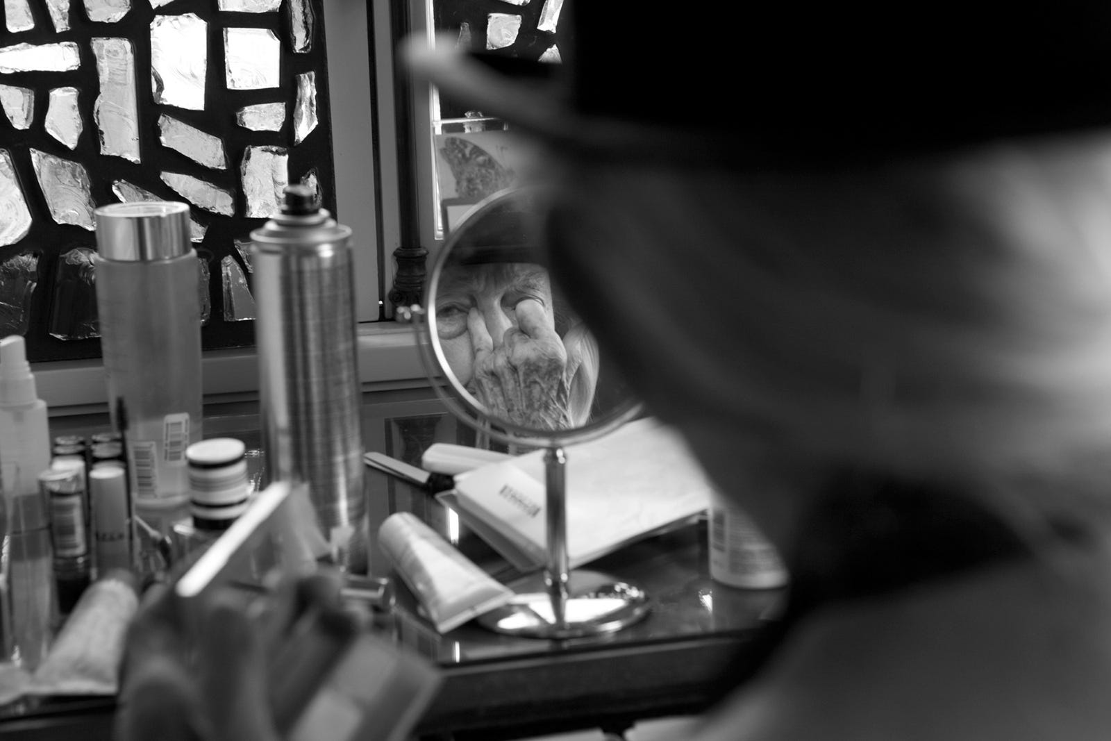 My grandmother has to "keep up appearances" in public, and is typically a fairly reserved person, but when it is just the two of us, her sternness seems to melt away. She has also told me that I have a way of relaxing her in front of the camera, too. She and I are family, just two girls having a conversation and playing dress-up.