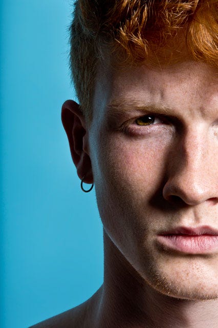 Red Hot, Knight's first solo exhibition (opening September 3 at the BOSI gallery on the Lower East Side), is doing just that — capturing a variety of redheaded males to prove that yes, gingers can be leading-man hot, too. Ahead, Knights talks about being bullied for his hair color, the stereotypes that ginger males face, and why Hollywood needs to step up and hire more redheaded male protagonists.
