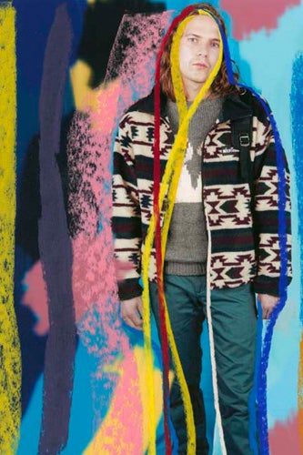 The UO dudes represent, too, with updated street wear, including bright puffy jackets, slim-fit jeans, ski hats, hoodies, and chunky-ribbed sweaters in super-sized prints. Sweet, hipster bangs and rumpled, free-flowing hair — that goes for guys and gals — keep the typical, laid-back Urban feel alive in the trippy, yet pretty-as-a-painting lookbook. There’s plenty of outfit inspiration for any holiday-friendly activity you're planning — the daytime date with your BFF, sipping spiced wine by the fire with your crush, or killing it on the dance floor at that NYE rager — and if Urban Outfitters has it their way, we'll be painting the town red (blue, purple, and yellow) all season long.