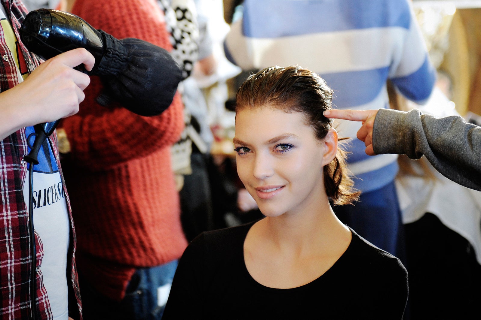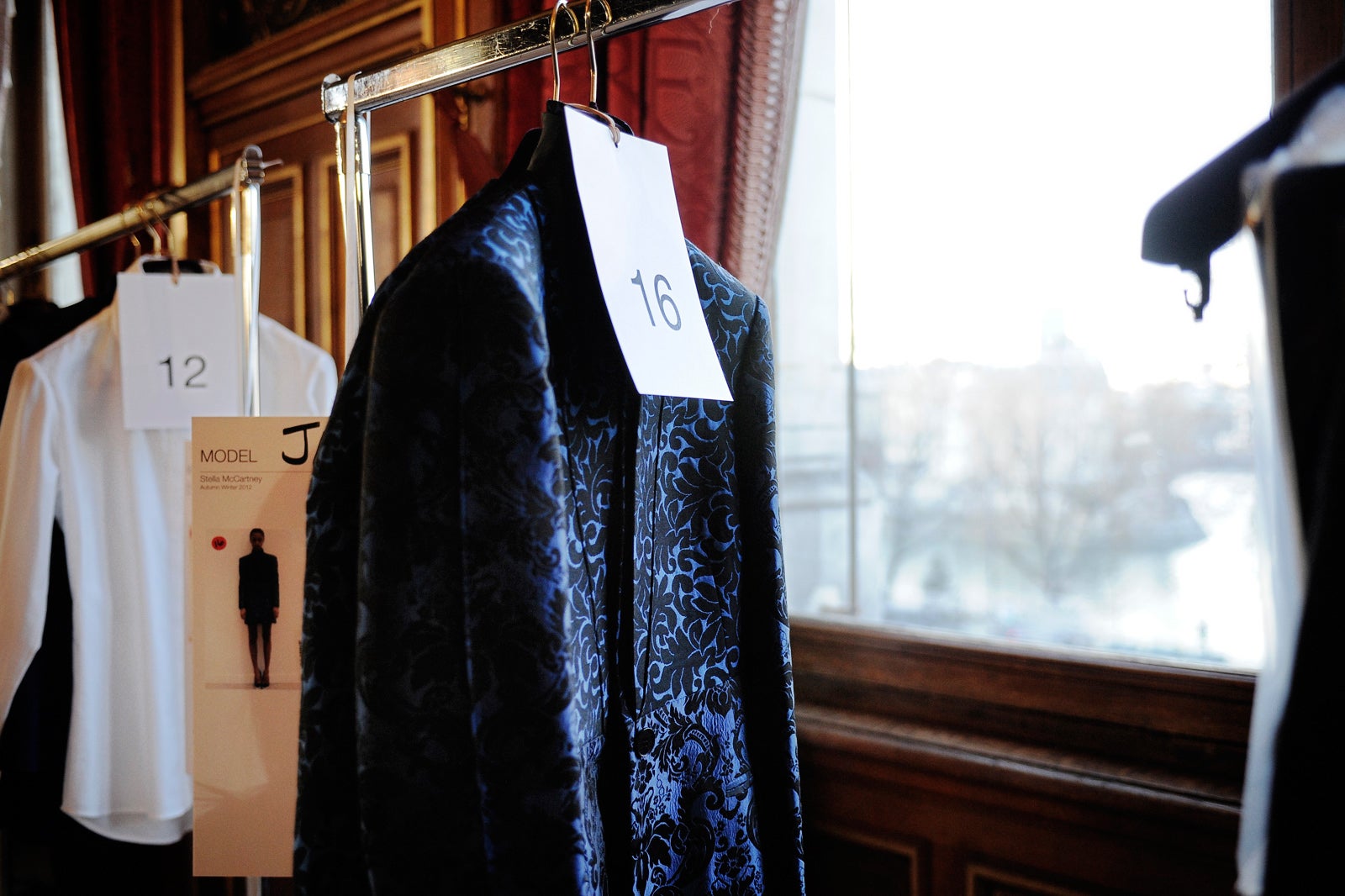 Stella McCartney is a woman after our own hearts; not only is she an astoundingly creative designer, but she's also mindful of all the nuances and diverse responsibilities of designers and women. What other brand do you know that makes killer cocktail dresses, exercise clothes, workwear, and is vegan? For her fall '12 show, Stella really pulled at our heartstrings with graphic, modern palm prints, buttoned-up separates; beautiful, color-changing, prismatic clutches; and amazing "croc" "leather" shoes that are made with neither crocodile nor leather. Click through to see our behind-the-scene photos (blue lashes anyone?)!