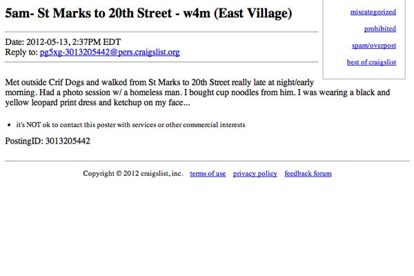 Enter, our latest Craigslist search. What began as an innocent troll for sublets wound up leading to the Missed Connections section, the for-sale section, and the, errm, "I'll trade you a tattoo for a small pure-bred puppy section," natch. And because we thought you could use a giggle after a long week, we've rounded up the most bizarre, out-of-the-box posts for a little mindless T.G.I.F fun. If nothing else, these slightly quirky personals will make you realize how normal your roommate really is. Click through for the best NYC Craigslist posts — they're so much weirder than you think.