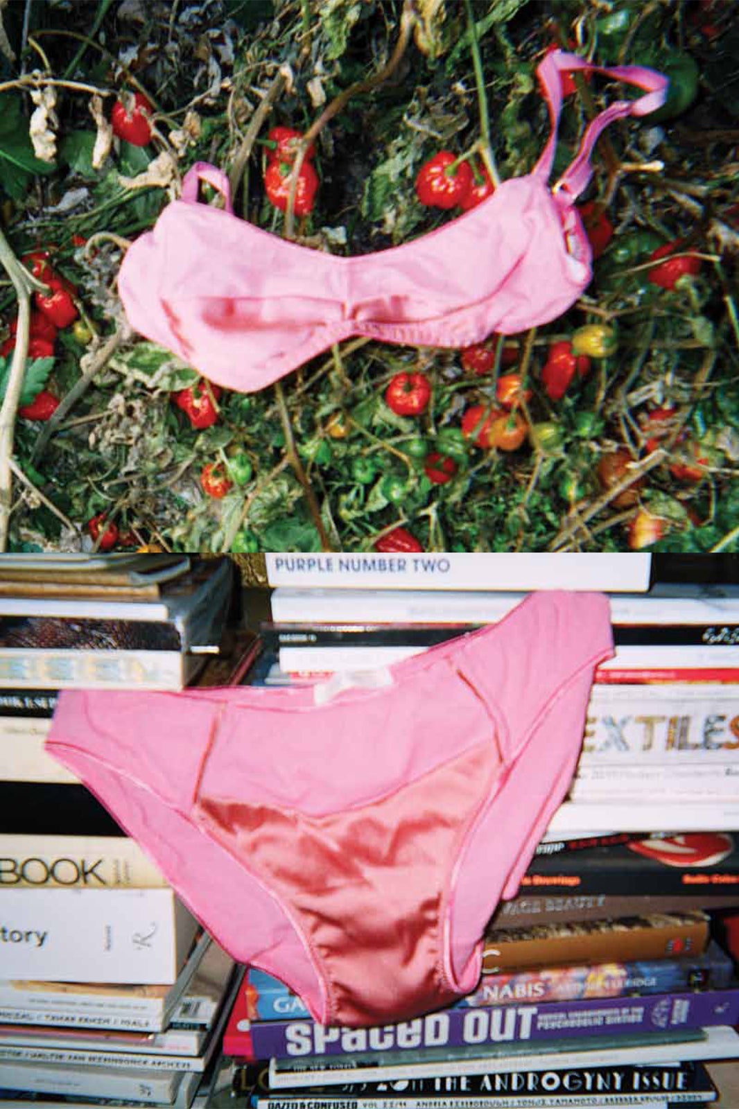 The process sounds as liberating as the unmentionables themselves: With Araks providing the eco-friendly separates and a disposable cam, the photographers –– ranging from the designer's intimate friends to industry-insiders to Hollywood heavyweights –– supplied images boasting low-resolutions, unexpected angles, unexpected models, and unexpected poses. Cue Tracy Feith's shot of the Joan panty modeled by a fuscia teddy bear, or Alexa Chung's portrait of Harley Viera-Newton takin' it off to reveal a pink bralett. For the Tia boxer, we love that Michelle Williams photographed that ab-curling instant of a late-night punch-line, and the one from casting director-come-Tales of Endearment scribe Natalie Joos, who has pictured herself in the middle of dress-up, smacking on a shockingly pink YSL gloss while wearing the Shelby PJ top. But, the prize for the best setting has got to go to stylist Natasha Royt, who, in sight of a tractor, chose the double-yellow of the small town thoroughfare to backdrop the Mirabella hipster. Sexy asphalt, indeed! Peruse the slideshow for the rest of Araks' understated mix of silk and cotton nightwear separates!