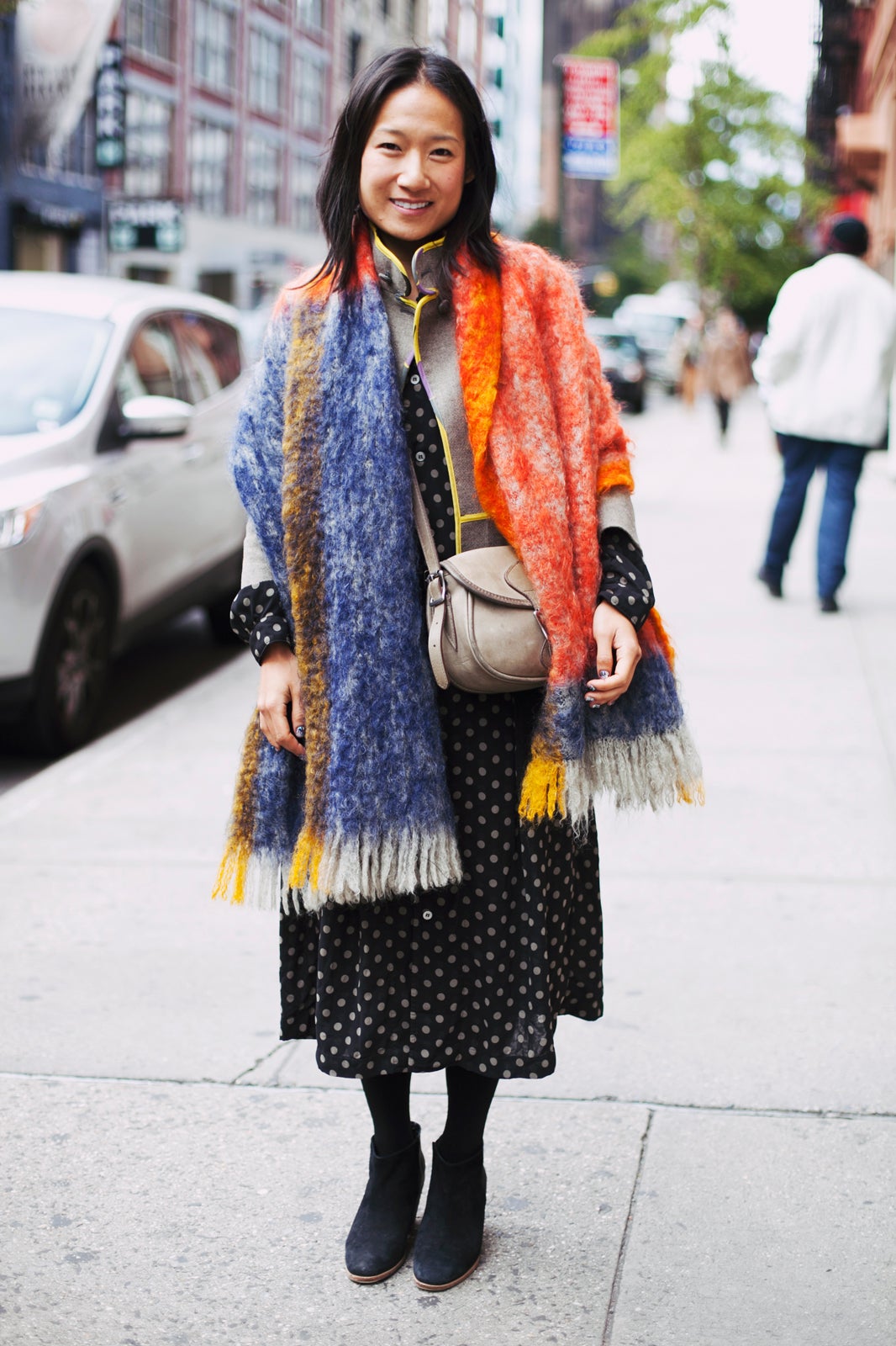 Though we couldn't snatch up the thousands of pieces of merch we were crushing on (insert sad face emoticon here), we could snap the sartorially inspiring looks on our fellow vintage fans (including the DANNIJO girls and Lynn Yaeger!). Mixing fresh threads, comfy threads, designer threads, and obviously throw-back threads, these 16 shoppers stepped up the "just browsing" style game and give us more to ogle over, too. Click through for our favorite looks spotted outside the Manhattan Vintage Show and tell us which you're crushing on most in the comments below.