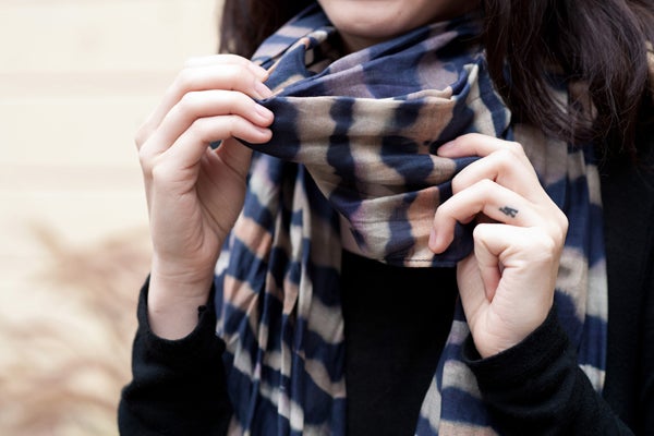 To help avoid a literal pain in the neck, we enlisted the help of local brand Serial Cultura to show us two clever ways to curl around its gem- and marble-embellished bundles in a cinch. So, whether you’re looking for a classic twist to show off a print-tastic piece or a shawl-inspired take to stay extra toasty, these fresh binds will do anything but tie your style down. Read on for the step-by-step tutorials and rock this cold-weather cure — stat!