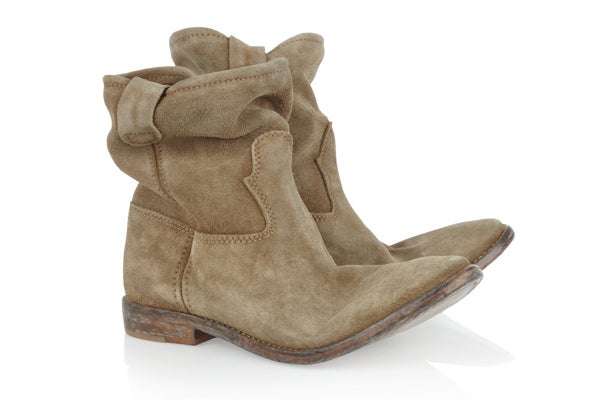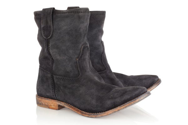 Case in point: Marant's sophisticated spin on the tooled leather cowboy boot, simple Dicker bootie, and the perfect, slouchy ankle boot — all meant to get dirty and scuffed just so.
