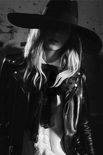 Yes, we can imagine the rapper loving this tough but glam collection. As evidenced by the sumptuous lookbook ahead, these pieces could make any girl look like she's living on the lam, chicly swindling her way from saloon to saloon.