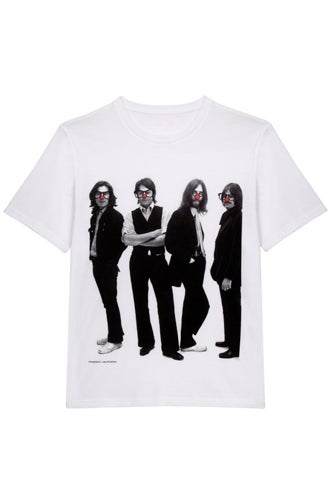 She's created a capsule collection of T-shirts in celebration of Red Nose Day, and one of the designs features her dad with his fellow Beatles — all dutifully wearing a red nose, natch. The tees also feature other scarlet-nosed icons, including Kate Moss, Tommy Cooper, and even Ms Marilyn Monroe.