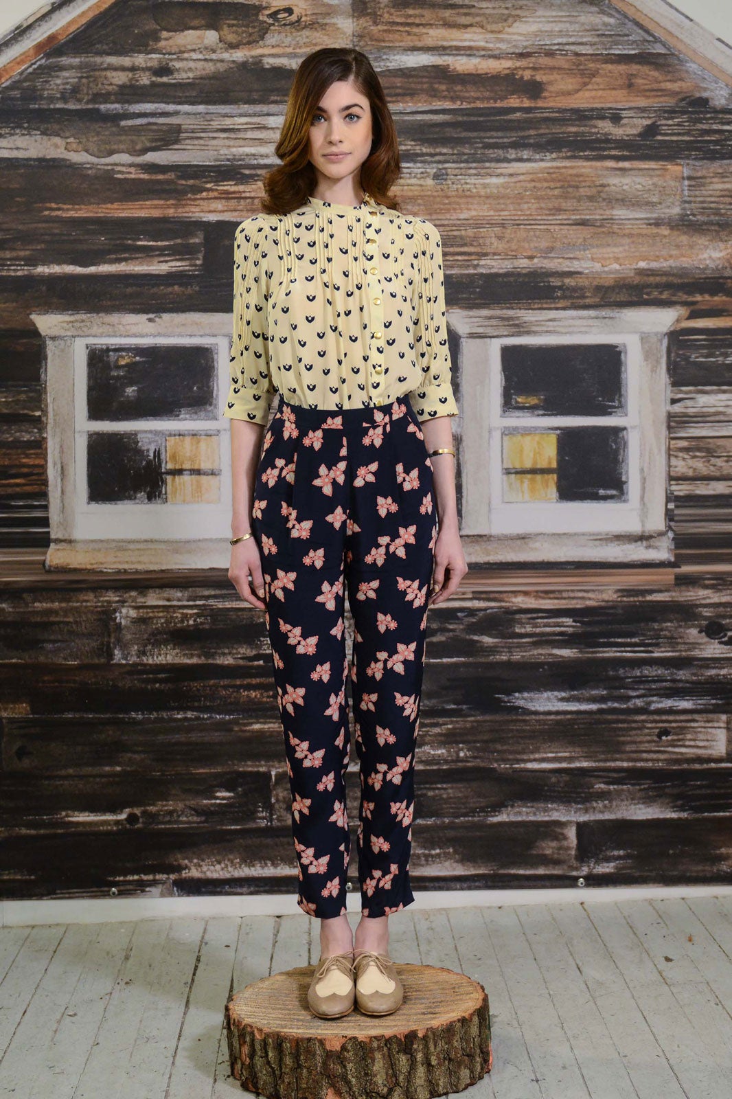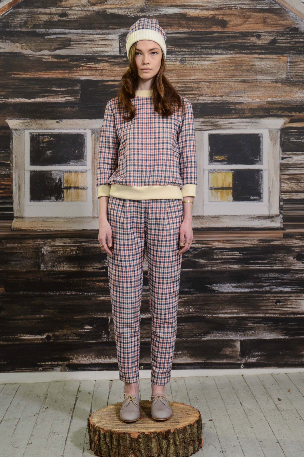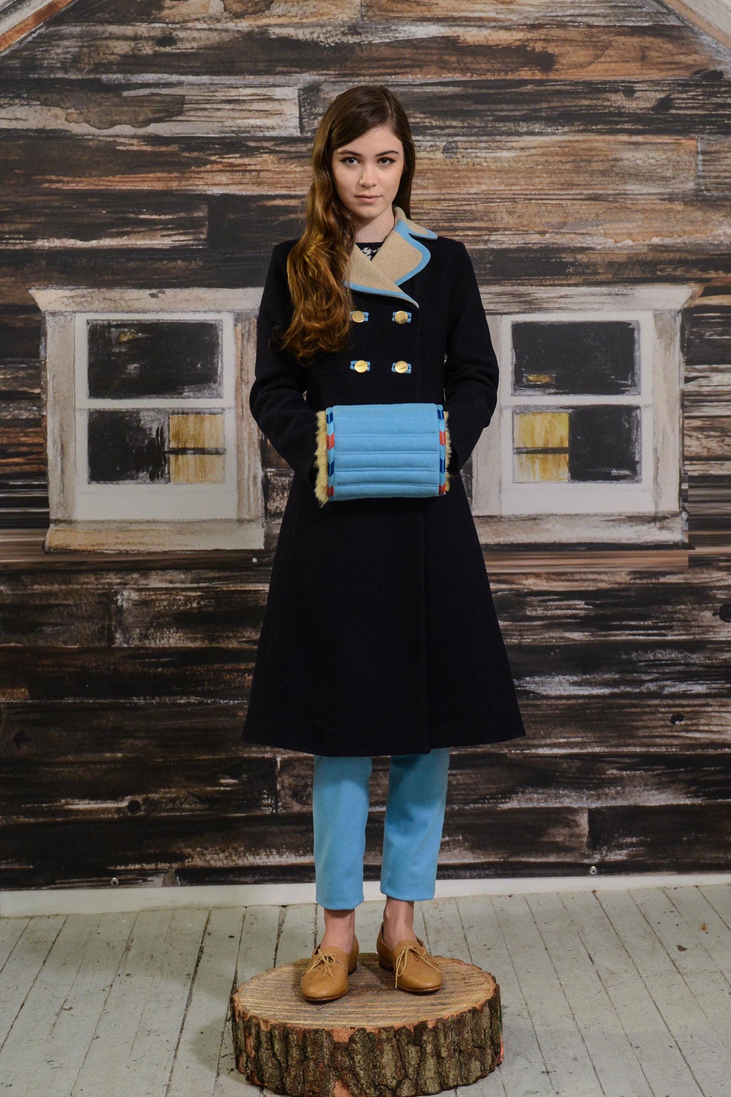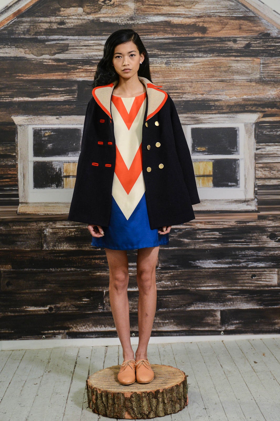 Providing us with a brief respite from the cold New York streets, Moffatt welcomed us in to join her models, clad in cozy-but-not-sloppy separates. And, obviously, there was an acoustic guitarist playing campfire tunes, to boot. The collection, inspired by a recent visit to the Catskills, was chock-full of Moffatt's signature girlish dresses, high-waisted trousers, and vintage-inspired coats — all proving that, when done right, a little country kitsch can keep any girl looking chic from the campsite to the big city.