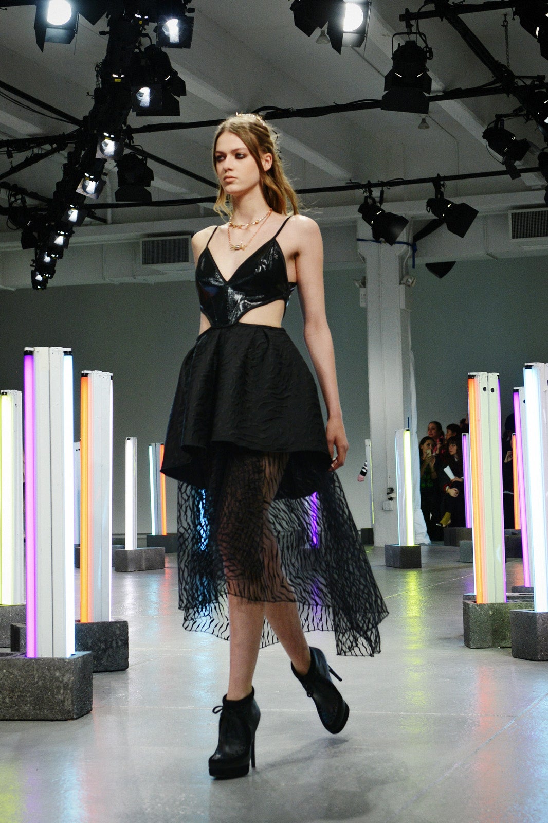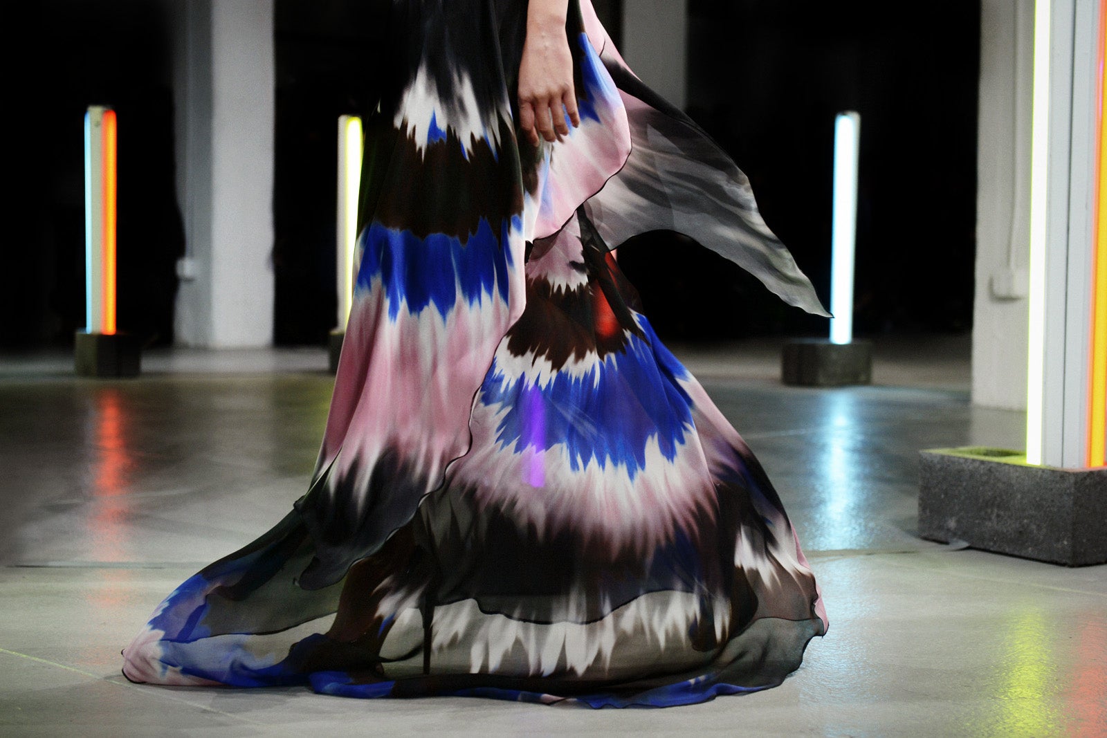 As vivid as a Venice Beach mural, the collection balances everyday and experimental style, with silky cropped pants and boxy blazers, high-cut leotards, sexy and sheer jumpsuits with angelic appliqués, and flowing, patterned dresses — the stuff that psychedelic dreams are made of. For a dose of sensory overload, the Mulleavy sisters included wildly colorful gowns that we hope will encourage devoted Rodarte fans — Elle Fanning and Kirsten Dunst, to name a few — to push the red-carpet limits.
