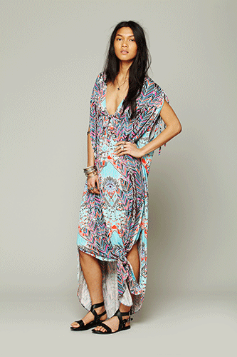 Featuring three gorgeous pieces – a mini poncho dress, a maxi kaftan, and a drapey pant – the exclusive collection embodies both Free People's casual effortless style and Hoffman's penchant for psychedelic patterns. The entire collaboration is perfect for beach days and nights out. We don't know which look we love most!