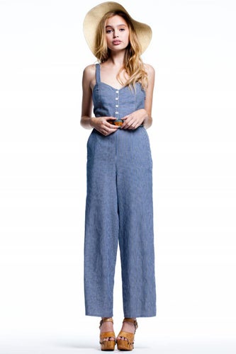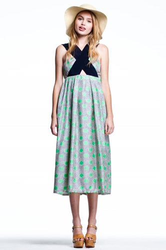 Full of fresh takes on the classic sundress, Lauren Moffatt's spring look is as adorably winsome and quirky as ever. From engineer-stripe denim overalls to swingy midi-dresses in '70s-style calico print, the 11 dresses ahead are sure to get you stoked for spring.