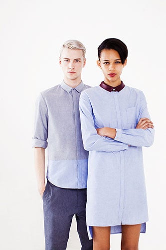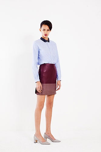 The two-tone leather skirts, bomber jackets, and oversize shirtlets whisper forever-cool. As the designer explains, “I wanted to place a real emphasis on making something timeless. The collection wasn’t rooted heavily in historical references. It’s an important way of working for me; I find myself thinking more as product designer than a fashion designer in a sense, and I try to work simply, with a straight-forward point of view and without ego.”