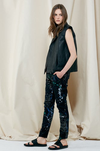 Tibi's wearable, everyday separates are staples among the fashion set. But now, as evident in their resort '14 lookbook, it's also a coveted brand for artists, too. The splattered motif, across a variety of pieces from jackets to full skirts, oversized shorts to skinny jeans, is decidedly Jackson Pollock — that is, if he wore his canvases to his own gallery show.
