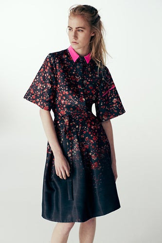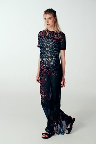Harking back to their heyday, Thea Bregazzi and partner, Justin Thornton, looked back to the ‘90s for inspiration. That's right, the days of raving in a field in Lancashire or getting grimy at a Manchester warehouse have managed to inspire a beautiful collection of dip-dyes, crop tops, and simple slips. Yet, despite the grungy roots, it all looks fresher than ever. A raver’s pink and a cobalt blue underpin the collection, and inky florals decorate the more formal pieces. And, despite the collection stemming from nostalgia, the Preen woman somehow manages to come off more polished than ever — heck, there's even a floor-length dévoré dress in there.