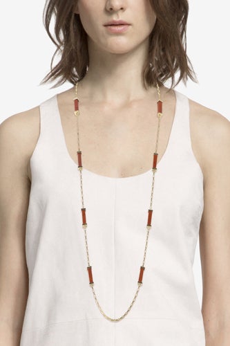 Clearly, Etienne Aigner gets us. The nine pieces ahead are all thick chains with sculptural-horn pendants and rough-cut African jade and pyrite. They're just the thing to satisfy our lady-traveler jewelry jones...at least until we accrue more vacation. Click on to see our favorites!