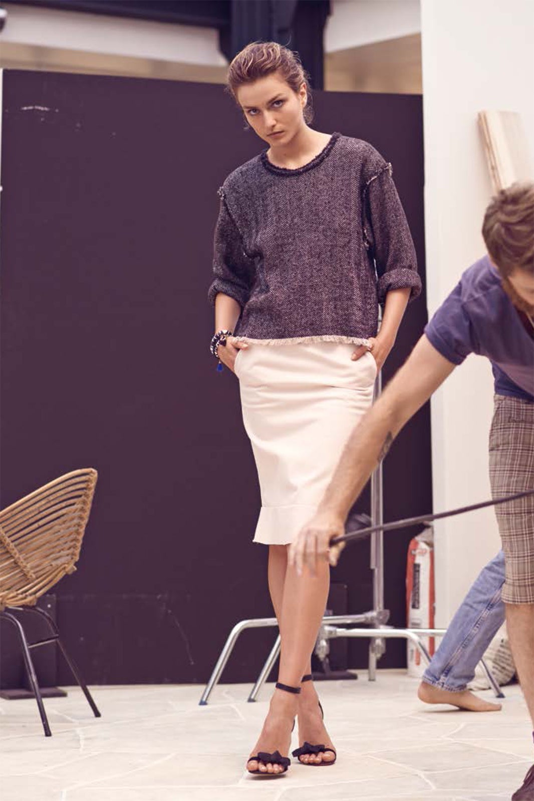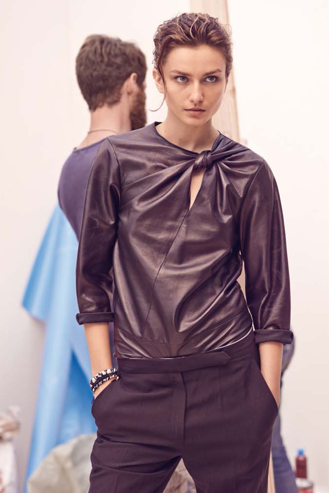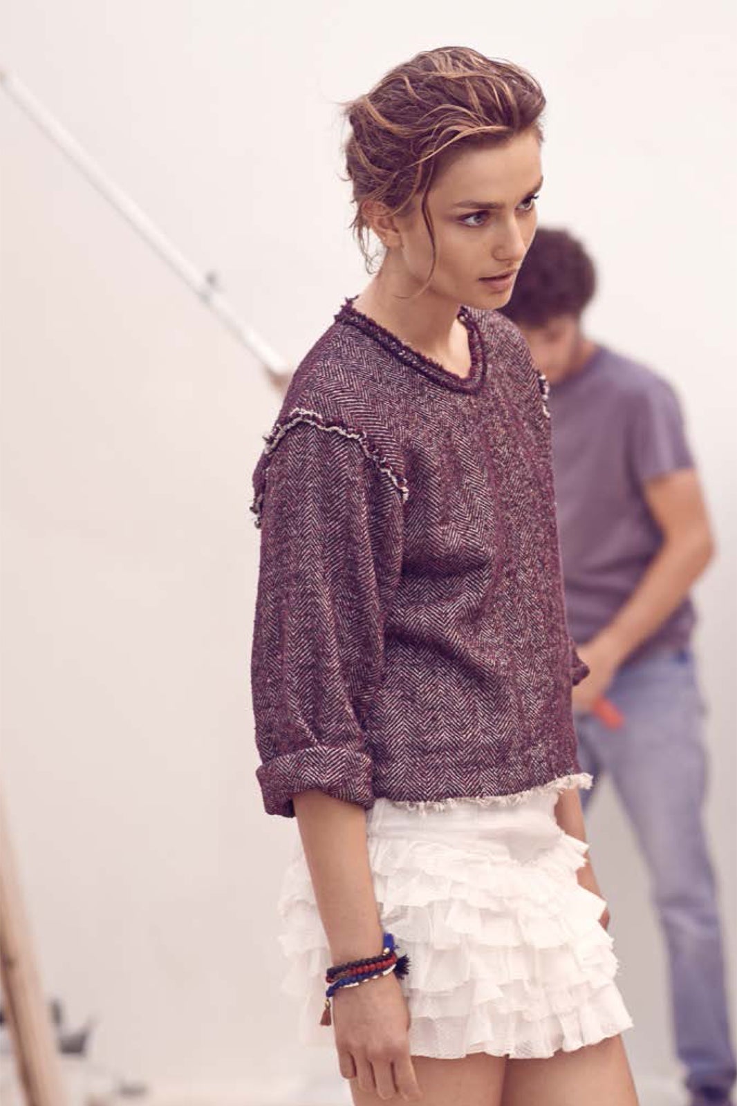 Isabel Marant has nailed it. The "it" referring to the exact kind of presence we like to have when in a room. The Marant woman here may not have precisely smooth hair, and she likes to wear her sweatshirts baggy and her pants loose and cuffed, but make no mistake, she demands serious attention. In the resort '14 lookbook, it appears as though an entire production is whirling around the model, yet she practically can't help but pull the spotlight right to her, as she wears designs that slouch, flip, and are tailored in all the right places.