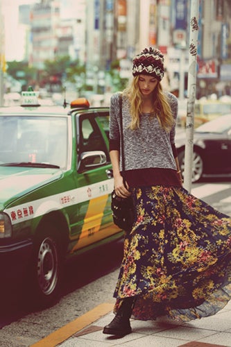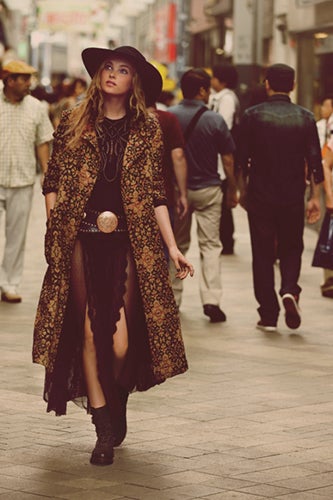 Elsa Hosk and Eimi Kuroda star in the lookbook, modeling Free People's standard boho frocks along bustling city streets and landscapes. Taking inspiration from Sofia Coppola's Lost In Translation, the colorful, layered looks are perfect for the transitional season. Leather jackets, floral maxis, fringe skirts, and knit sweaters add to Free People's eclectic aesthetic, as do the velvet, lace, and embroidered holiday dresses. Knee-high socks, Western hats, and glittering accessories provide the finishing touches to the outfit inspiration. Jump ahead to delight in the foreign escapades, and be prepared to double your fall wish list by the end of the slideshow.