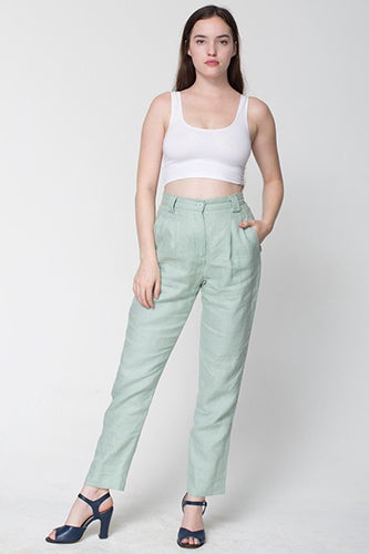 Confession: We're not interested in borrowing from the boys. We're interested in straight-up stealing some of the contents of their closet, from a crisp oxford to a college sweatshirt for lounging in oversized luxury. But, by far one of our favorite pieces are menswear trousers. A little high-waisted, sometimes tapered – they look amazing on us ladies.