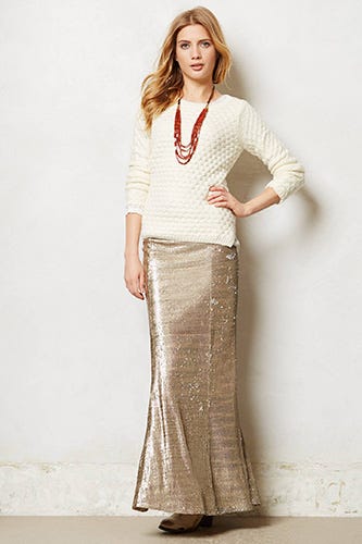 Is it just us or is it a little bit crazy that maxi skirts are so often associated with summer? If there's anytime we're jonesing for a floor-length sweeper you can layer with tights and booties, it's during the cold throes of winter. We especially love a maxi for a less predictable (and certainly warmer) option for all of our holiday get-togethers.