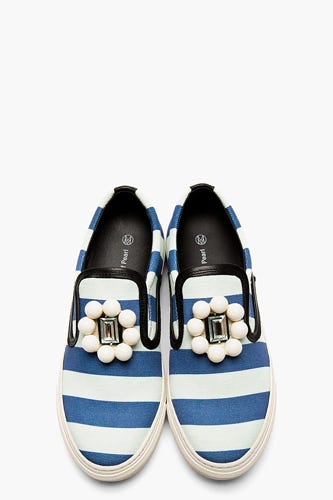 Playing off the vibrant patterns in its ready-to-wear collections, Mother of Pearl skipped the heels when it came to its footwear offerings. Instead, for resort '14, it stuck to the comfy and casual slip-on sneaker. While a classic, white lace-up has always been a closet staple, these pairs are a bit more special, as they're splashed with stripes, florals, animal prints, and big-time embellishments. And, because we're firm believers that statement shoes needn't require a platform or a good sense of balance, we'll be choosing these eye-catching kicks to spice up our spring wardrobes. Click on to view — and shop! — the five styles we're crushing right now.