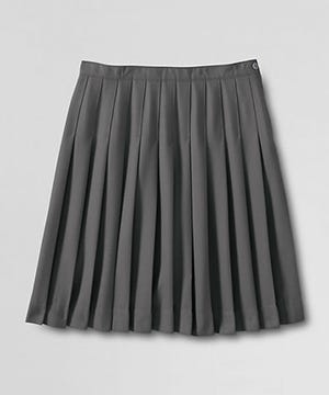 N°21 Fern Printed Scuba-Jersey and Lace Sweatshirt, $445, available at Net-A-Porter; Zara Striped Shirt, $39.99, available at Zara; Lands End Women's Solid Pleated Skirt, $40, available at Land's End; Alice + Olivia Closed-Toe Slip-Ons, $348, available at Alice + Olivia; J.Crew Calf Hair Baseball Cap, $258, available at J.Crew; Jin Soon Nail Lacquer in Nostalgia, $18, available at Sephora.