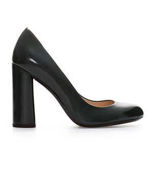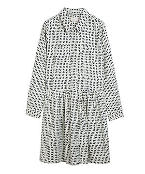 La Garçonne Moderne Malin Merino Cashmere Cardigan, $595, available at La Garçonne; Nina 'Taylor' Crystal Statement Brooch $65, available at Nordstrom; Chinti and Parker Printed Shirt Dress, $112.50, available at Chinti and Parker; Liebeskind Berlin Serpentine Skinny Belt $29, available at Urban Outfitters; Tenoversix Nail Polish in Prince, $18, available at Sephora; Zara Block Heel Leather Court Shoe, $59.99, available at Zara; MICHAEL Michael Kors Medium Selma Top-Zip Satchel, $348, available at Michael Kors.