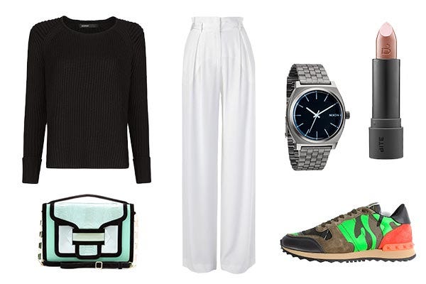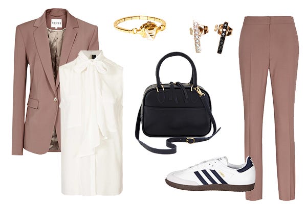 So, after we published this work-friendly sneaker roundup and saw all of our readers' comments, we took the story a step further. We thought a lot about the business-casual dress code — like the power suit and the pencil skirt — and how we'd integrate sneakers into those 9-to-5 staples without taking you into high-fashion overdrive. Yep, you asked, and we answered! The result is five work-perfect outfits that won't make you stick out like a sore thumb or kill your arches — taking you through the week in comfort and style. And, that's something we can all appreciate — fashion editor, financial analyst, and so on.
