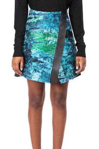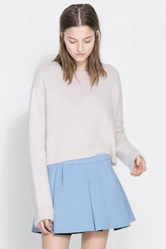 To keep you from feeling more chilly than chic, choose a heavier skirt fabric like wool, denim, velvet, leather, or a thick cotton blend. Finish with patterned tights or chunky-knit, thigh-high socks. Up ahead: Asymmetrical hems, sequins, colorblocking, fringe, and everything under the winter sun. Shop 20 rad styles, get inspired, and politely tell frostbite its invite got lost in the mail. Take that, polar vortex!