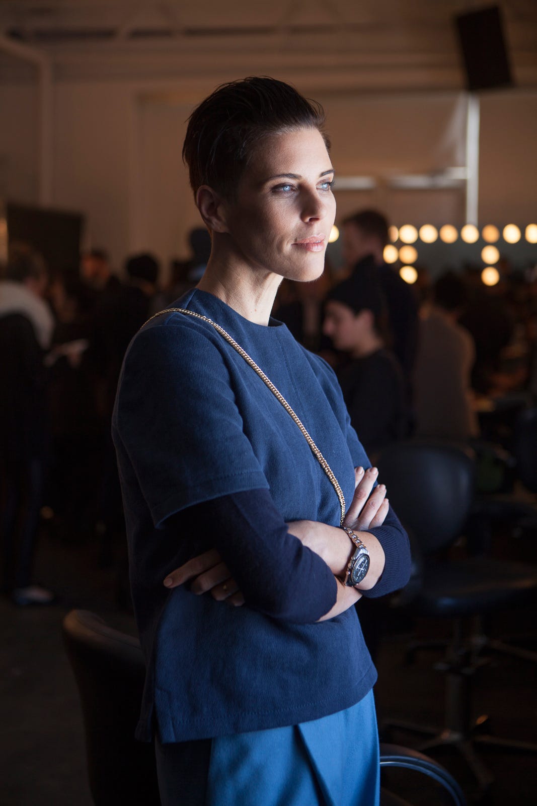 Soundtracked with a mélange of Gil Scott-Heron, The Last Poets, and Betty Davis, the vibe during Karen Walker's fall '14 show was of total empowerment served up with a side of funk. Consider the cool-chick hallmarks that made an appearance: roomy pants you can move in, golden loafers you can walk in, crossbody bags to take along, and a great cat eye...just because. It would seem the Karen Walker girl has streamlined her closet a bit this season, and even leaned toward the dark side.