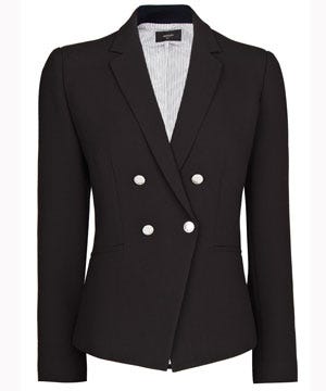 Mango Double Breasted Blazer, $59.99, available at Mango; Dolce & Gabbana Silk Crepe de Chine Pussy-Bow Blouse, $1,095, available at Net-A-Porter; Frame Denim Le Garcon Slouch Jean, $209, available at Steven Alan; Aldo Alerrassi Ankle Boot, $120, available at Aldo; Urban Outfitters Follow The Lines Round Sunglasses $14, available at Urban Outfitters; House of Harlow 1960 Meteora Tennis Bracelet, $55, available at Shopbop.