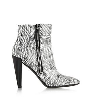 Equipment Brett Blouse, $198, available at Equipment; River Island Light Blue Plaid Cigarette Pants, $100, available at River Island; MAC Lipstick in Russian Red, $16, available at Nordstrom; Kenzo Printed Leather Ankle Boots $690, available at Net-A-Porter; Mackage Novaki Small Cross Body Bag, $250, available at SSENSE; Luv Aj Tusk Earrings, $60, available at Nasty Gal.