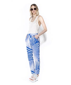 always won.) There was just something so mesmerizing about those swirling, changing color patterns. Well, now, OTTE is bringing that aesthetic to your big-kid closet. The NYC-based retailer released its latest print, featuring a blue-and-white kaleidoscope-esque pattern that decorates its flowy dresses, pants, and jumpsuits — perfect additions to your spring wardrobe. So, relive your childhood, and shop the line below. We promise there's something that will catch your eye.