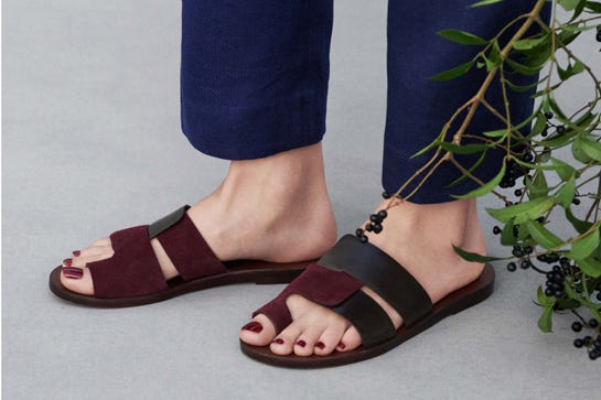 Much like scrunchies, flip-flops were something we could get away with in middle school. But, as grown-ups who don't spend most of our existence at the beach, we really don't have any business flopping around in them. Still, we appreciate the thong's slip-on-slip-off appeal. And, that's where the slide comes in.