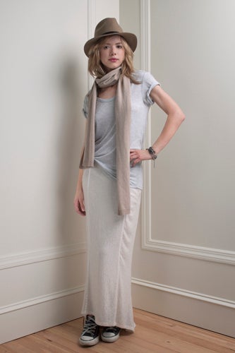 Thick, cozy, knitted hats. Glorious gloves. Wool thigh highs. Sweating yet? Even though it's way too hot to be thinking about warm winter wear, the sexy-chic Club Monaco fall lookbook has us wishing the temps outside were far chillier for more than just the sake of our AC bill. We saw the clothes in-person yesterday and we've been fantasizing about curling up in cocoon-like camel coats, beautiful lingerie, and fluffy cardigans ever since. They even made sequins and silver lamé look luxurious as opposed to something you might have found in the costume closet for "Showgirls". Get inspired with Monaco models Pamela Love, Tracy Antonopoulos, Misha Nonoo, and more, and start making your lust list now—the pieces will be in stores from October through December.