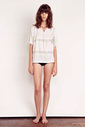 For spring '14 the label has served up another robust batch of everyday dresses and separates we could see on a range of New York women. Picture the floor-length kaftan on a long summer ride out to The Rockaways or Montauk, the live-in-them frocks on a shopping day at the Brooklyn flea, and the seersucker trousers complimented as they ride up the office elevator. Or, better yet, just picture them in our closets.