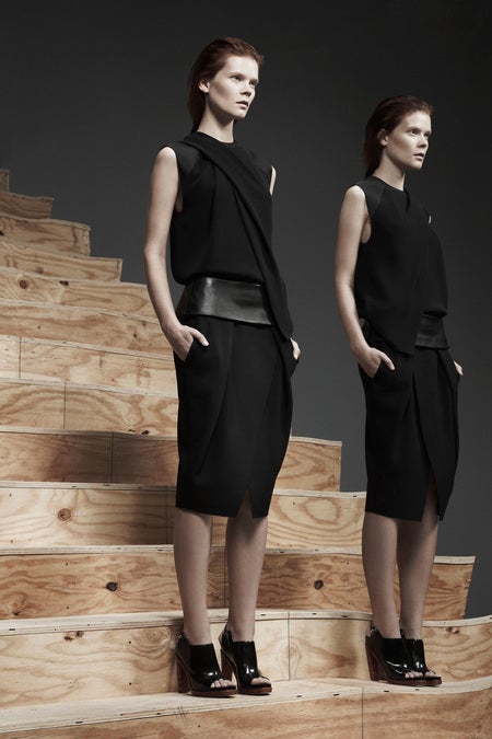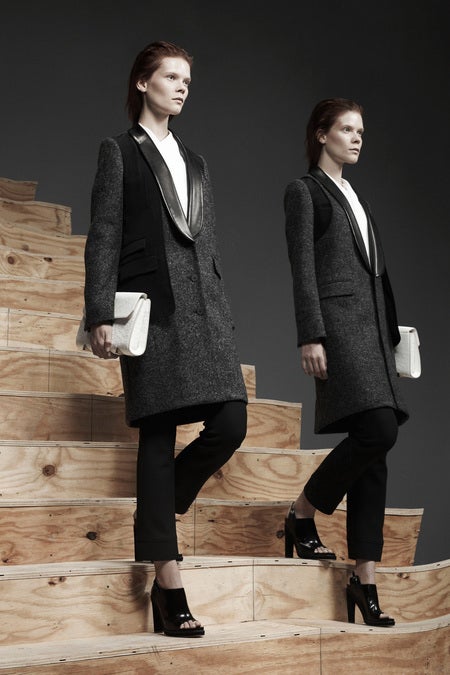 We can assume that Alexander Wang was at least putting the final touches on his pre-fall '13 collection when he accepted the new position at Balenciaga. Whether or not the latter affected the former can't really be determined until February, but after taking the whole trajectory of Wang's collections into consideration, we think the designer is finally primed for the spaceman-meets-workingwoman sophistication of Balenciaga. This current pre-fall collection showed off Wang's more grown-up approach to dressing. Gone are the days of the downtown girl who's never held a job because she's too busy slinking around nightclubs — though, don't expect the 2013 Wang-ite to be at a normal job. Slick "work" backpacks, Prada-esque suit layering, and vests-as-dresses would never fly with a corporate HR (thank goodness), and we're glad to see that his commitment to making sweatpants-at-the-office happen hasn't eased up (it gives a whole new meaning to the sweatsuit).