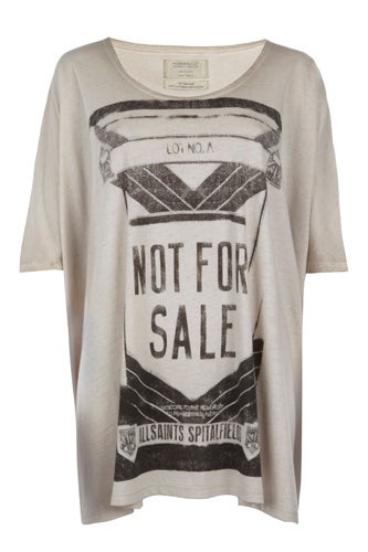 If you'd like your shopping dollars to stretch farther than the length of your closet, pop into AllSaints Spitalfields this weekend. AllSaints has partnered with Not For Sale, a non-profit raising funds (and social awareness) to prevent human trafficking. The pair have come up with a super-cool line of t-shirts to add to your weekend wardrobe arsenal, and the proceeds will benefit the non-profit's work to combat human trafficking globally. By wearing these shirts, you'll help promote the shared vision of Not For Sale and AllSaints to prevent forced labor and end human trafficking. Click through for a sneak peek of the tees, then get your own at AllSaints. Shop with a little more purpose this weekend. AllSaints Spitalfields, 700 North Michigan Avenue (at Superior Street); 312-283-0400.