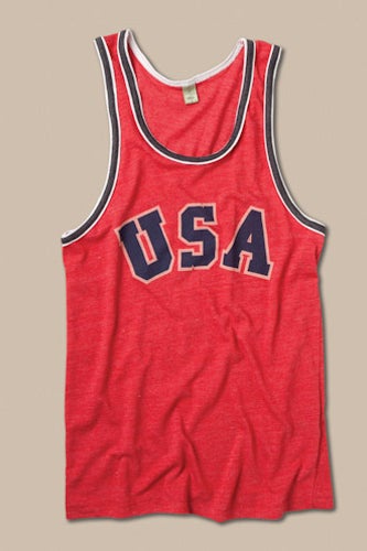 There's a reason they tell you to never wear a band's T-shirt to the concert. Fan gear, whether it's showing pride for The Black Keys at a Black Keys show or that "I ♥ NY" while your vacationing in the Big Apple is, frankly, a little lame. And, when it comes to patriotic U.S.A. gear, it's hard to not look like a tourist if you're sporting it any day other than the Fourth. Enter Alternative Apparel. The clothing company has released a patriotic collection just in time for the Olympics, and unlike some other red-, white-, and blue-themed gear we've seen before, this one's just downright rad in its simplicity. From faded tanks to worn-in baseball tees, some of these athletic styles look so classic that they'd pass for school uniforms from way back when. And those soft, throwback white U.S.A. tanks? We'd wear them proudly.