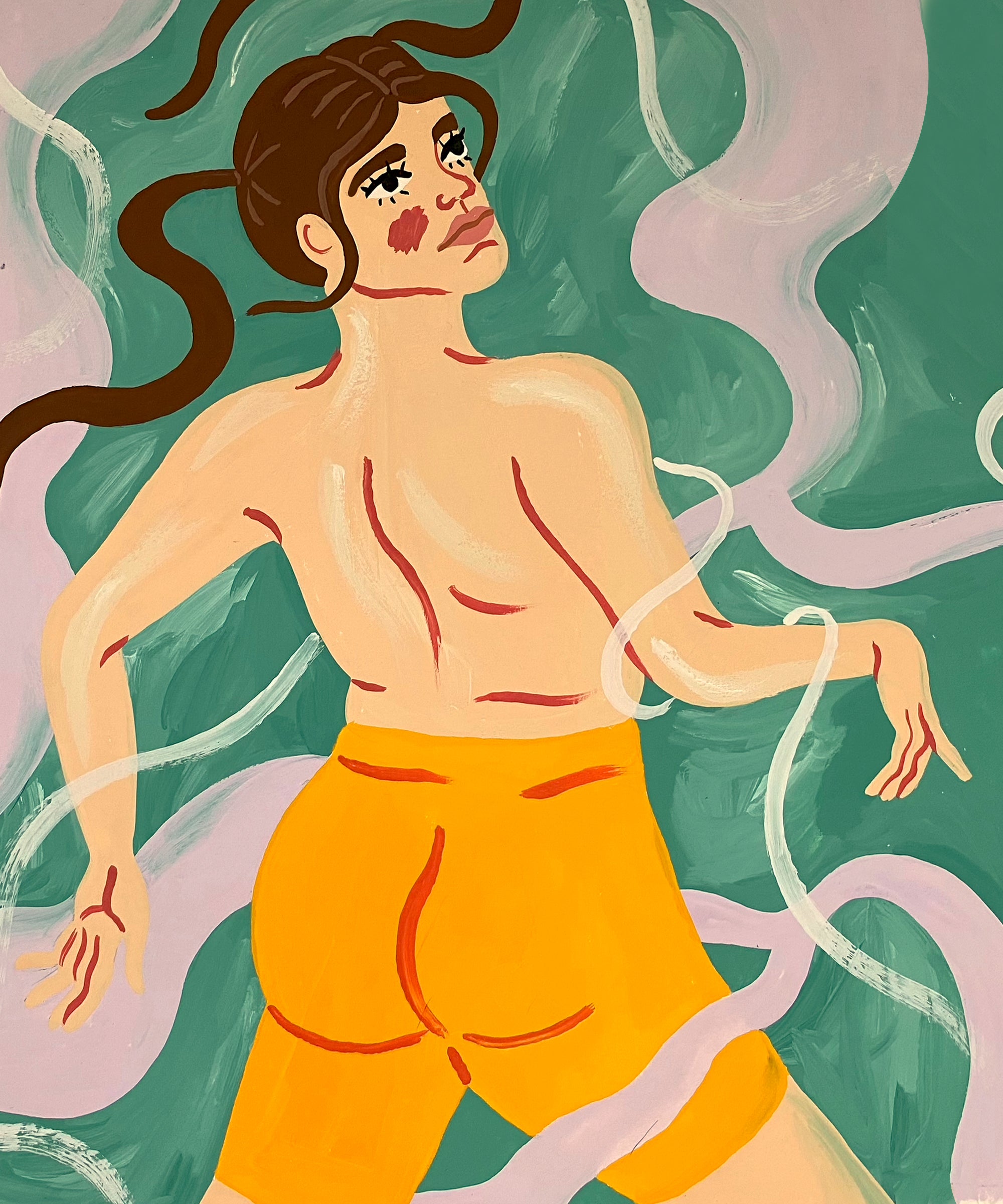Obwohl ich seit der Abschlussdisko viele Kilos zugenommen habe und sich mein Style weiterentwickelt hat, ist meine Vorliebe, so viel wie möglich von meinem Körper zu zeigen und knappe Outfits zu tragen, immer noch dieselbe. Diesem Faible aufgrund der Größe meiner Oberschenkel und der Notwendigkeit von schützenden Shorts nicht nachkommen zu können, bringt all die negativen Körperbild-Erinnerungen aus meiner Jugend wieder ans Tageslicht. Es klingt vielleicht komisch, doch je mehr ich von meinem Körper verdecke, desto größer mein Schamgefühl. Jede Person, die schon mal eine Ess- oder Körperbildstörung hatte, würde mir wahrscheinlich bestätigen, dass selbst die banalsten Dinge zu Triggern werden können. Und deswegen kann eine simple Sache wie einen Midi- statt einen Minirock tragen zu müssen dazu führen, dass ich mich stundenlang unter meiner Bettdecke verstecken und wegen des Körpers in dem ich stecke heulen möchte.