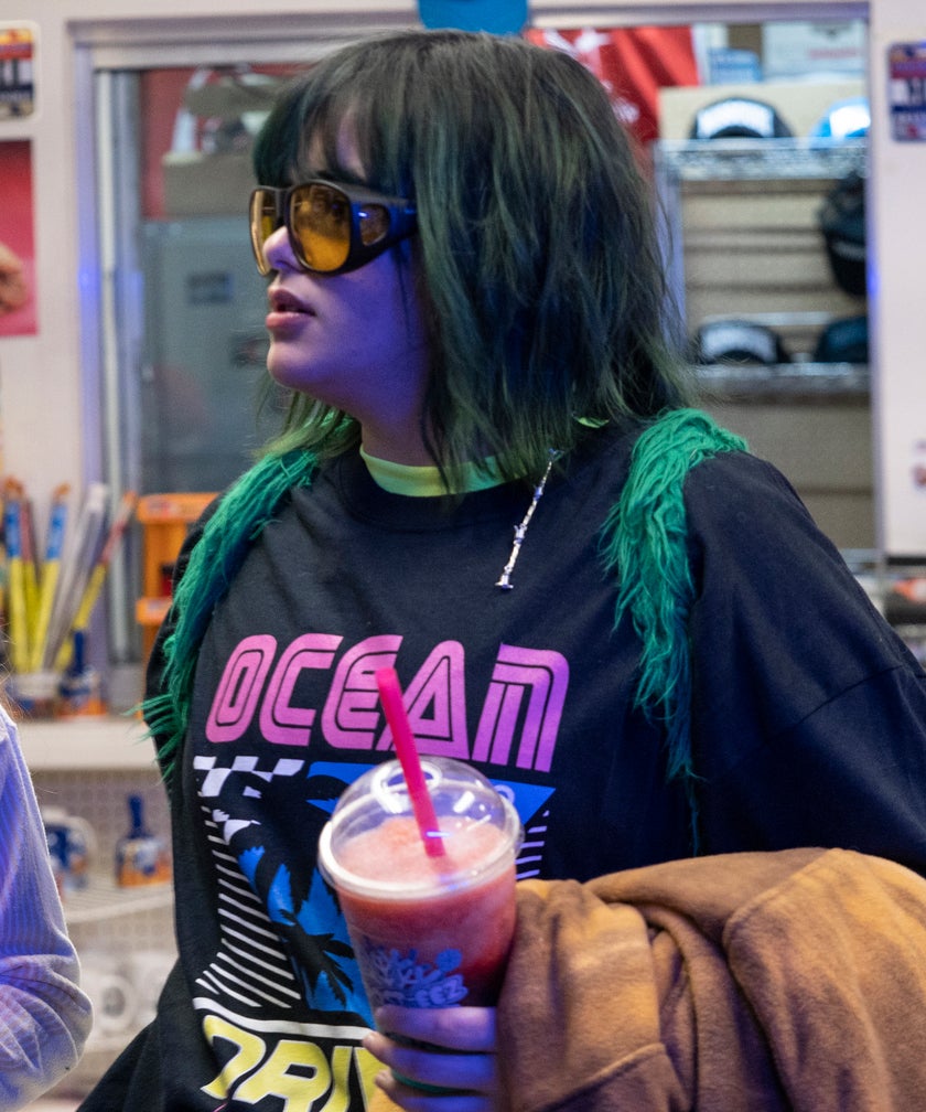Relaying Bailey's discomfort with her social standing for Unpregnant in an authentic but not heavy handed way was key for Ferreira. She wanted it to be obvious that the character was purposely trying to stand out of the crowd, but also hint that her often puzzling personal choices were also the result of not being able to fit in with her classmates. So the actress meticulously mapped out Bailey's entire chaotic energy, from her choppy green locks to her gas station-chic looks to her social skills (or lack thereof).