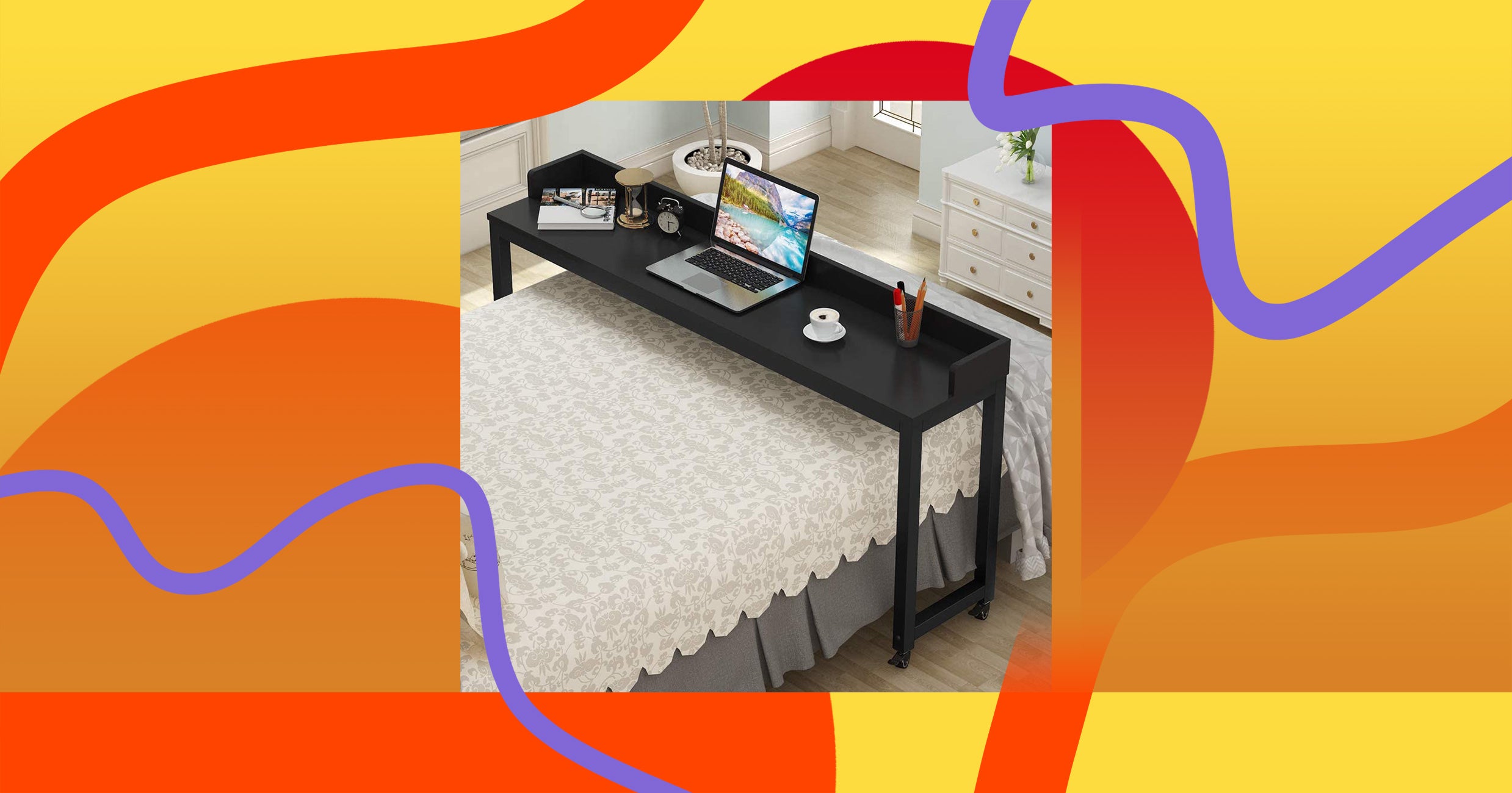 WFH Pros Say: "This is the best invention since the internet! Very sturdy. It fits perfectly over my Queen-sized bed. Great for eating and computing. I highly recommend this for all of my introverted cohorts. All of my remotes fit nicely upon it and within reach. It’s a total game changer! Get it!"