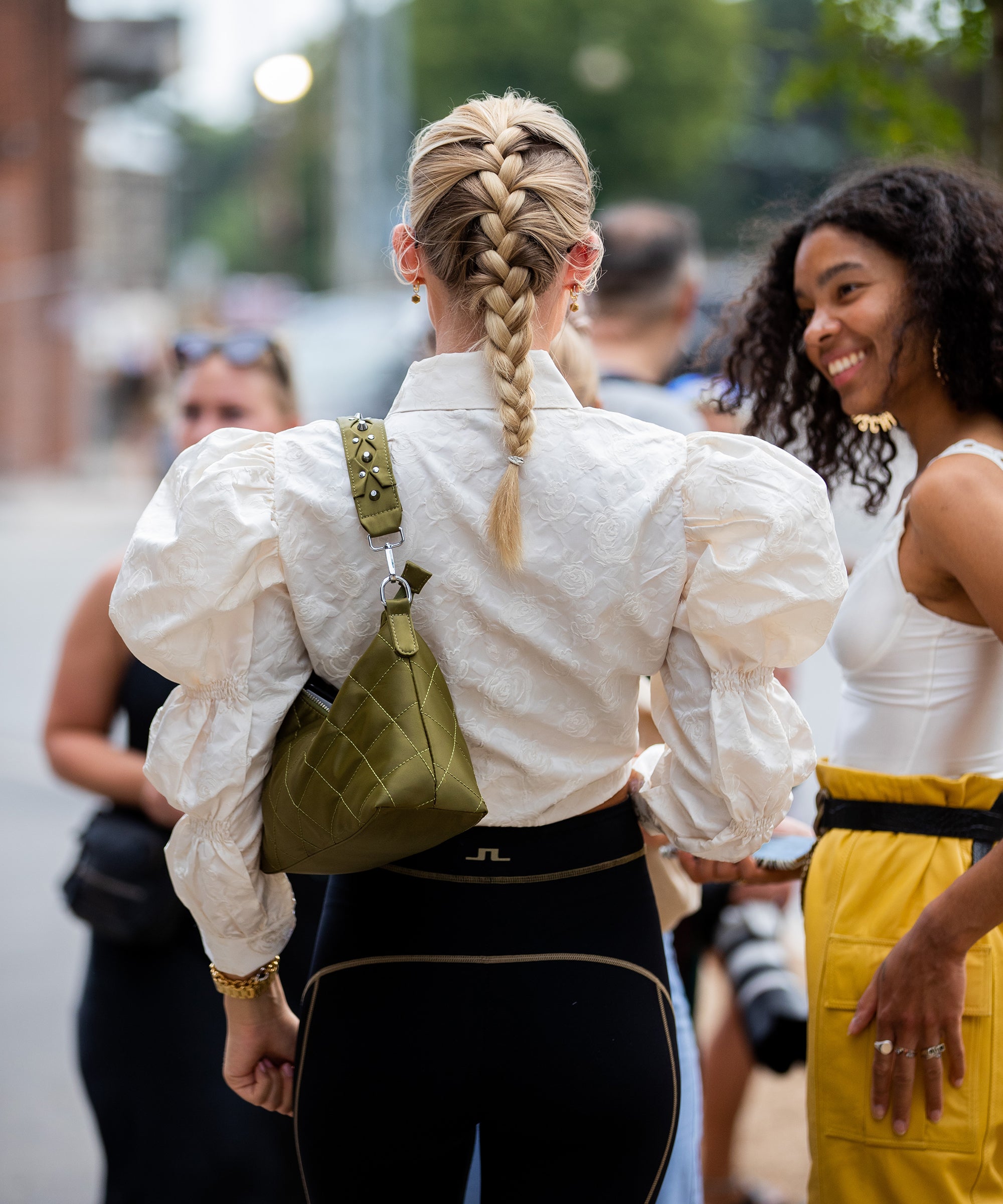 While there's a time and a place for the fashion-girls' thick padded headband, this fall, we're seeing softer silk elastic bands come into focus. Specifically, we're loving this aqua-blue printed option by hair-accessory label Grace Eleyae. It's gentle on the hair, soft and stretchy to prevent headaches, and instantly dresses up any simple white t-shirt.