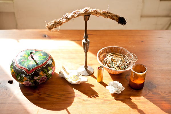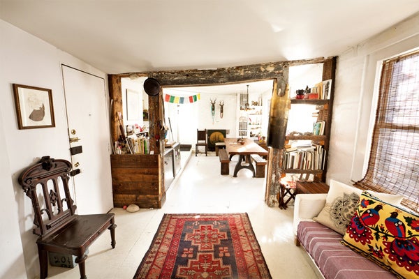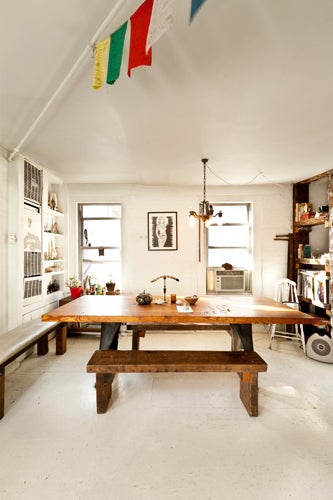 We'll be the first to admit that, yes, we've been a little more than obsessed with Anna Sheffield's architectural, oftentimes raw jewelry since the very beginning, with its perfect marriage of punk sensibilities and victorian elegance. And now, with the launch of Anna Sheffield's newborn bridal collection — boasting the same edgy essence as Bing Bang, Bespoke, and AS Fine Jewelry, but with a timeless, heirloom-appropriate twist — we can actually imagine a world where our own vows can be approached with the same playful nod to our rebellious teenage years, laced with old-world grace and a healthy dose of high-end glossing. So, what makes this astronomically accomplished, game-changing designer tick, aesthetically? Well, you needn't look further than her cozy, humble abode, nestled snugly in the heart of the once-dingy, notorious Bowery neighborhood in downtown Manhattan. With walls decked out in salvaged, weathered wood one might only find in an Albuquerque ranch home, the tattooed, one-time Marc Jacobs muse puts New York City's small spaces to shame, making good use of every square inch, in one of the most design-conscious ways we've seen in ages. Peppered with vignettes of sculptural trinkets from her travels, native sage, colorful pops of embroidery, and southwestern elements galore (like her oh-so lust-worthy incorporation of Sonoran Catholic art just about everywhere), Ms. Sheffield finds room for everything, including her friends' art and even a small balcony garden overlooking the East Village. Click through, but be prepared — you won't look at NYC small-apartment living the same.