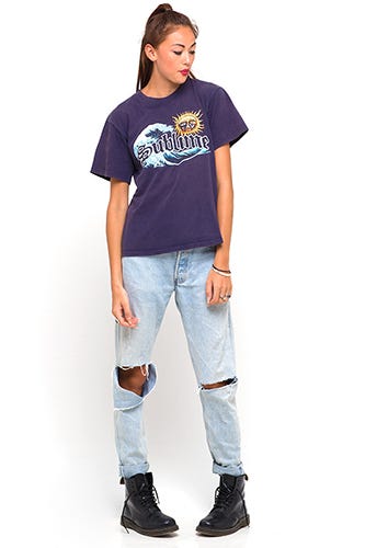 Because, nothing better embodies the memory of your first concert quite like a keepsake T-shirt purchased at one of those overpriced stands. This editor has got a threadbare Goo Goo Dolls top stashed away in her dresser as proof. Quitting them isn't even an option. And, we why should we? Tucked into a midi-skirt or styled casually with dark-rinse skinnies, they're just as versatile as our favorite denim — maybe even more so since we can wear them as pajamas, too. So, join us in this indulgence, and add a new fave just in time for festival season.