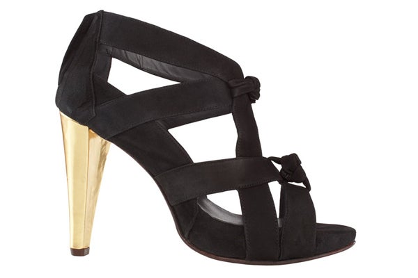 Briones takes us traveling through the Atacama desert in an incredible neon-and-neutral palette, and lets us virtually tour the original street-style markets full of traditional elements of craftsmanship in metalworking and handwoven designs. We're craving the knotted heel detail on the Barbara Briones loafer pump, and are all about those gold highlights. Check the whole collection, all handmade in Santiago de Chile, for some serious Latin American inspiration — almost good enough to eat.